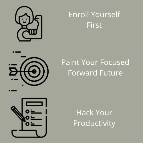 Identify productivity hacks so that you can get more done without being overwhelmed during your transition.